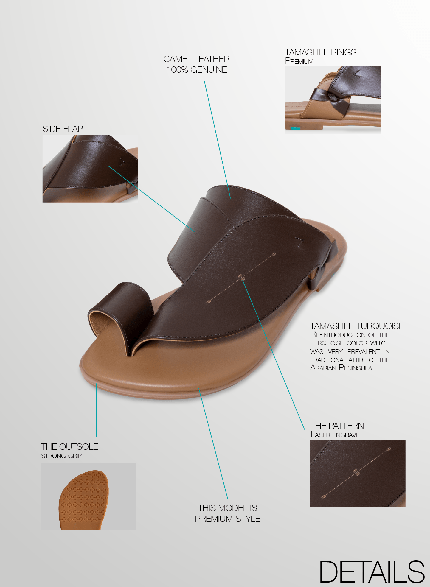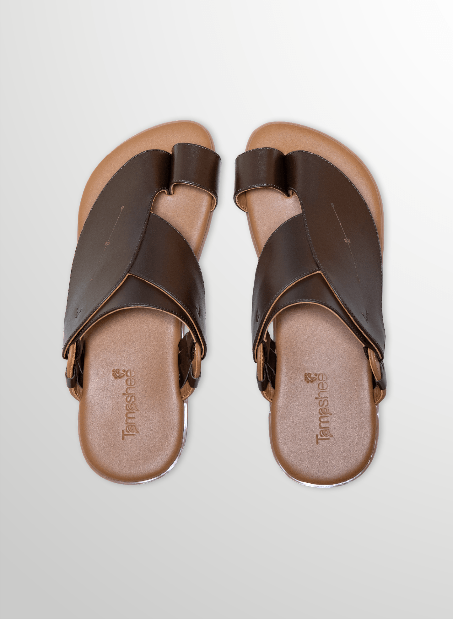 - A Maghateer Arabic Sandals design highlighting a solid brown color