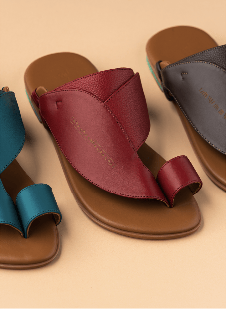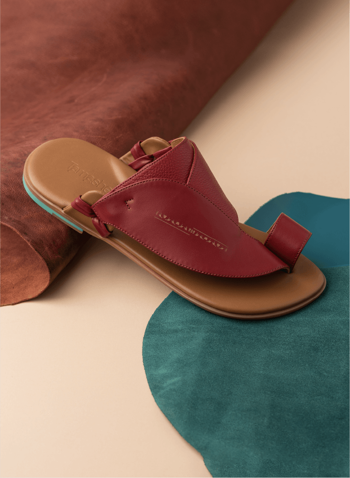 - An Arabic Sandals design highlighting a bright burgundy color