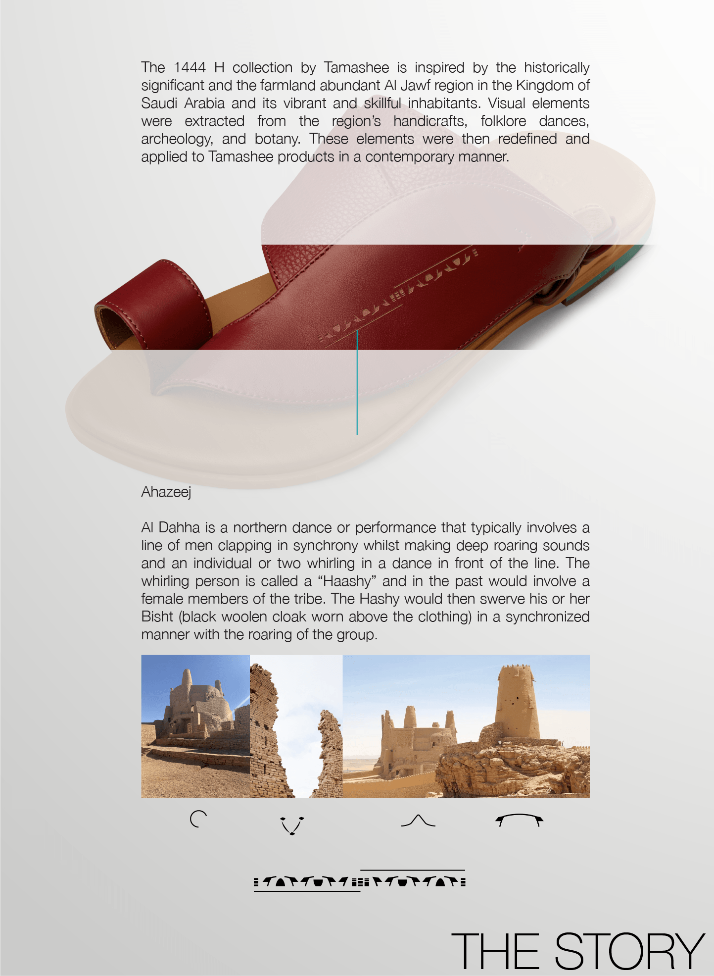 The large flap design highlights a contemporary pattern inspired by the visual design of the ancient Maarid Castle located in Dawmat Aljandal, Al Jawf, Northern Saudi Arabia. Maarid Castle is an ancient military fortress believed to have been built in the 1st century AD. It was first mentioned by Zenobia of Palmyra, who tried to storm the fortress but failed. The Sandals for Men final pattern you see on this Men Sandals model is the final re-creation of the artwork by Tamashee’s design team. Key features of this Mens Arabic Sandals model include: