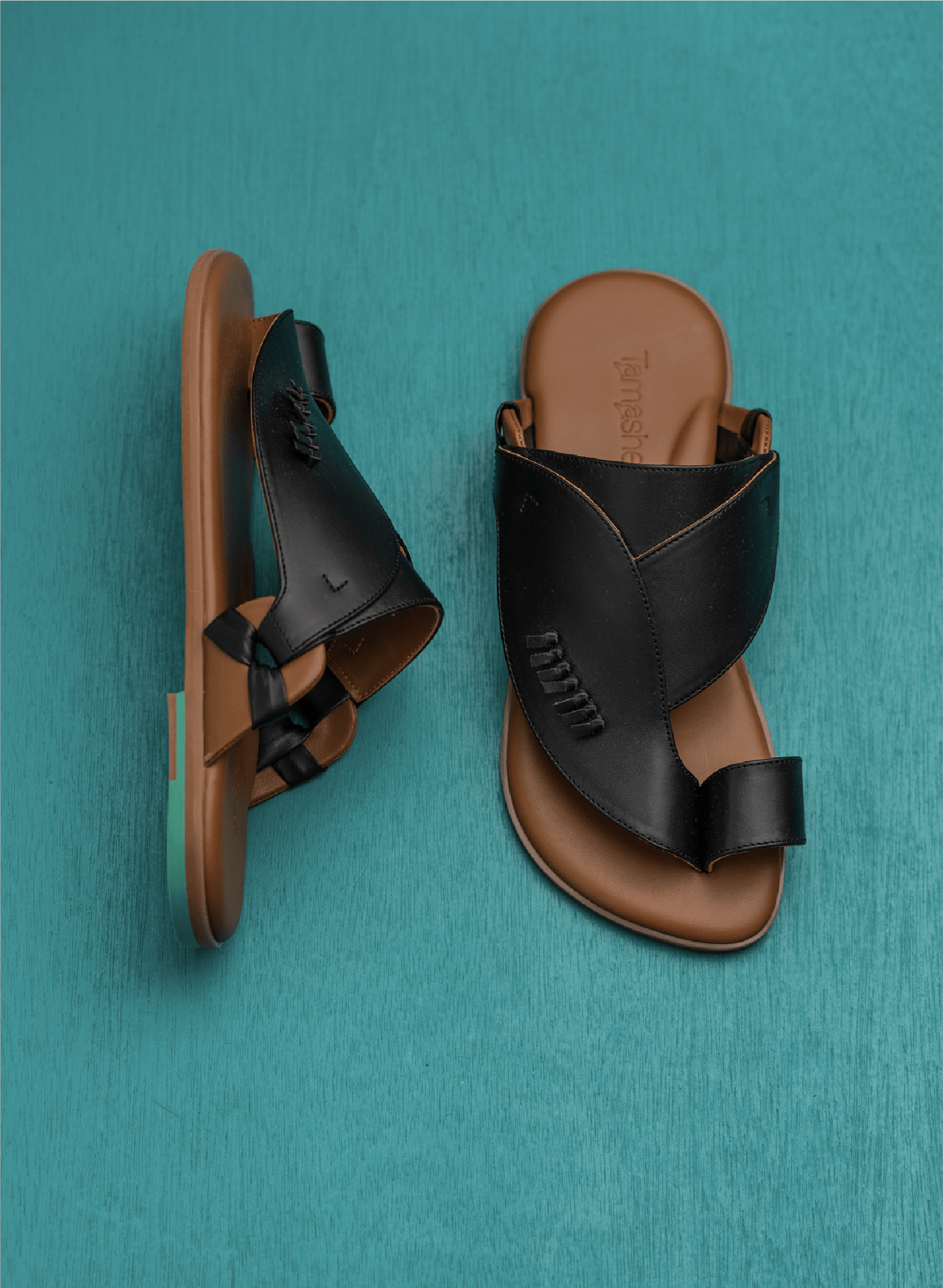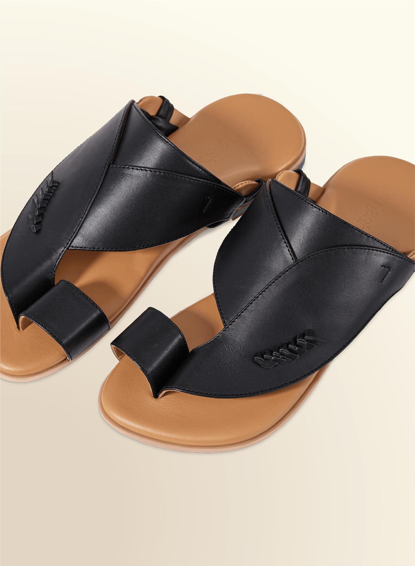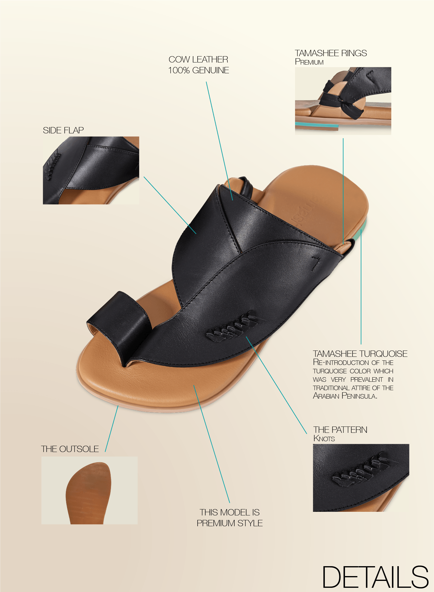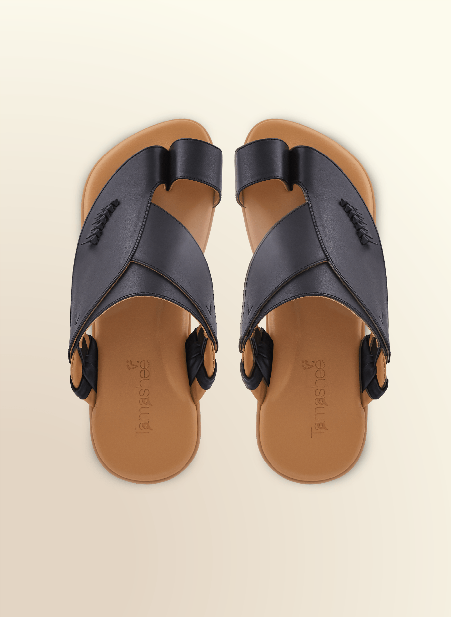 The large flap design Black Arabic Sandals for Men highlights seven handcrafted knots, inspired by the timeless patterns of our traditional sandals. This Men Sandals signature piece reflects Tamashee’s commitment to honouring heritage while embracing contemporary style. Key features of this Sandals for Men model include: