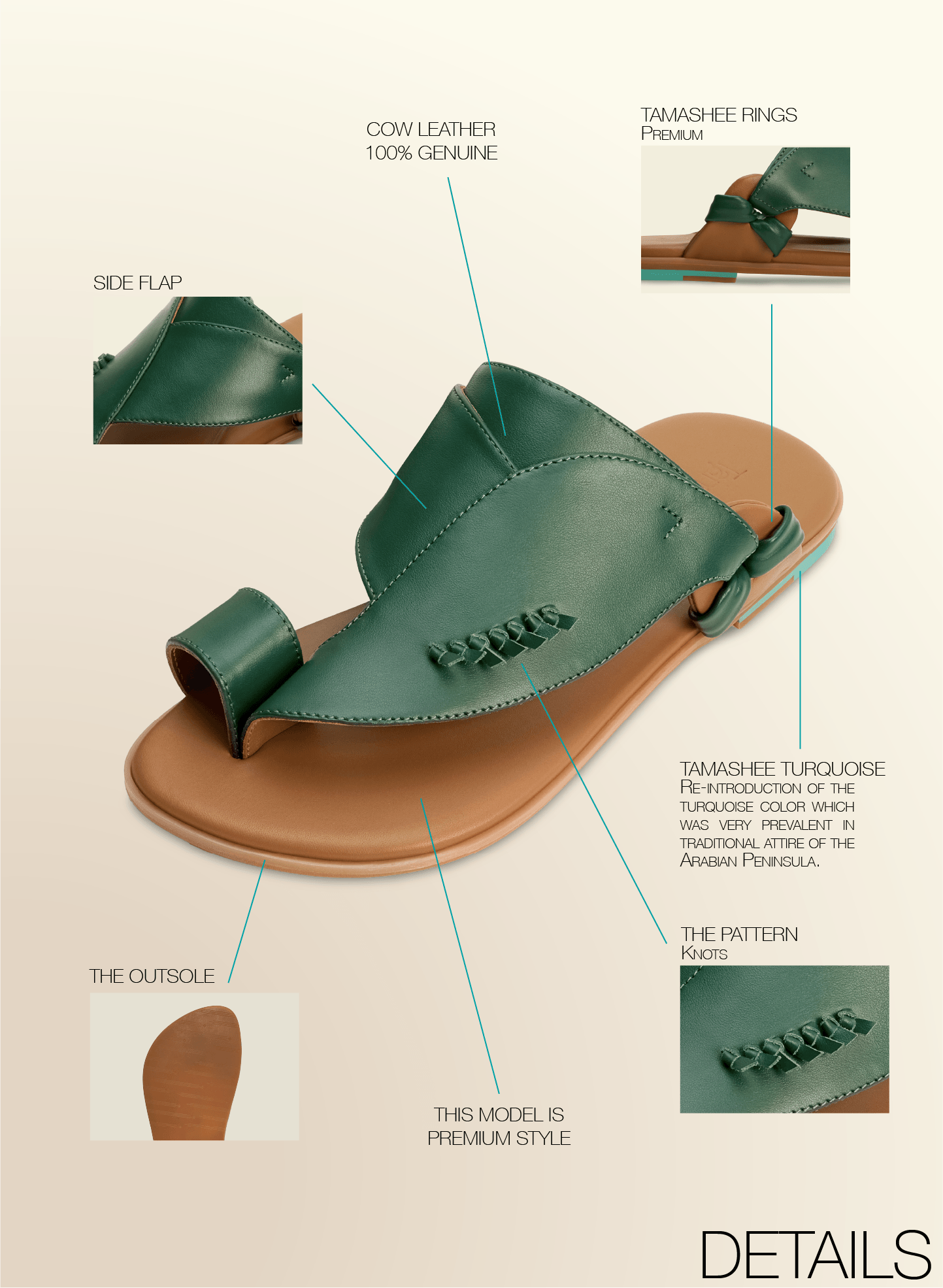 The name of this Arabic Sandals model, “M.SE | Green“, is inspired by the solid colour green.