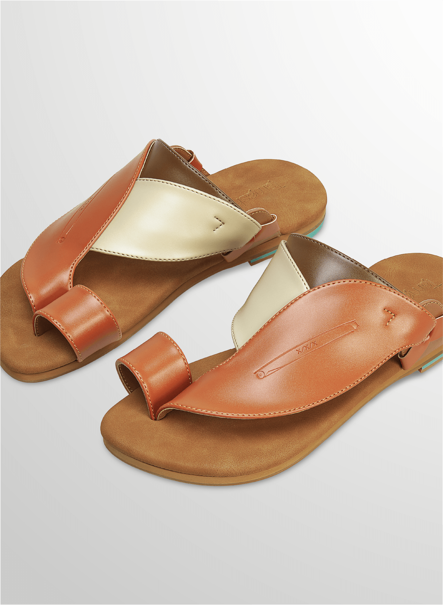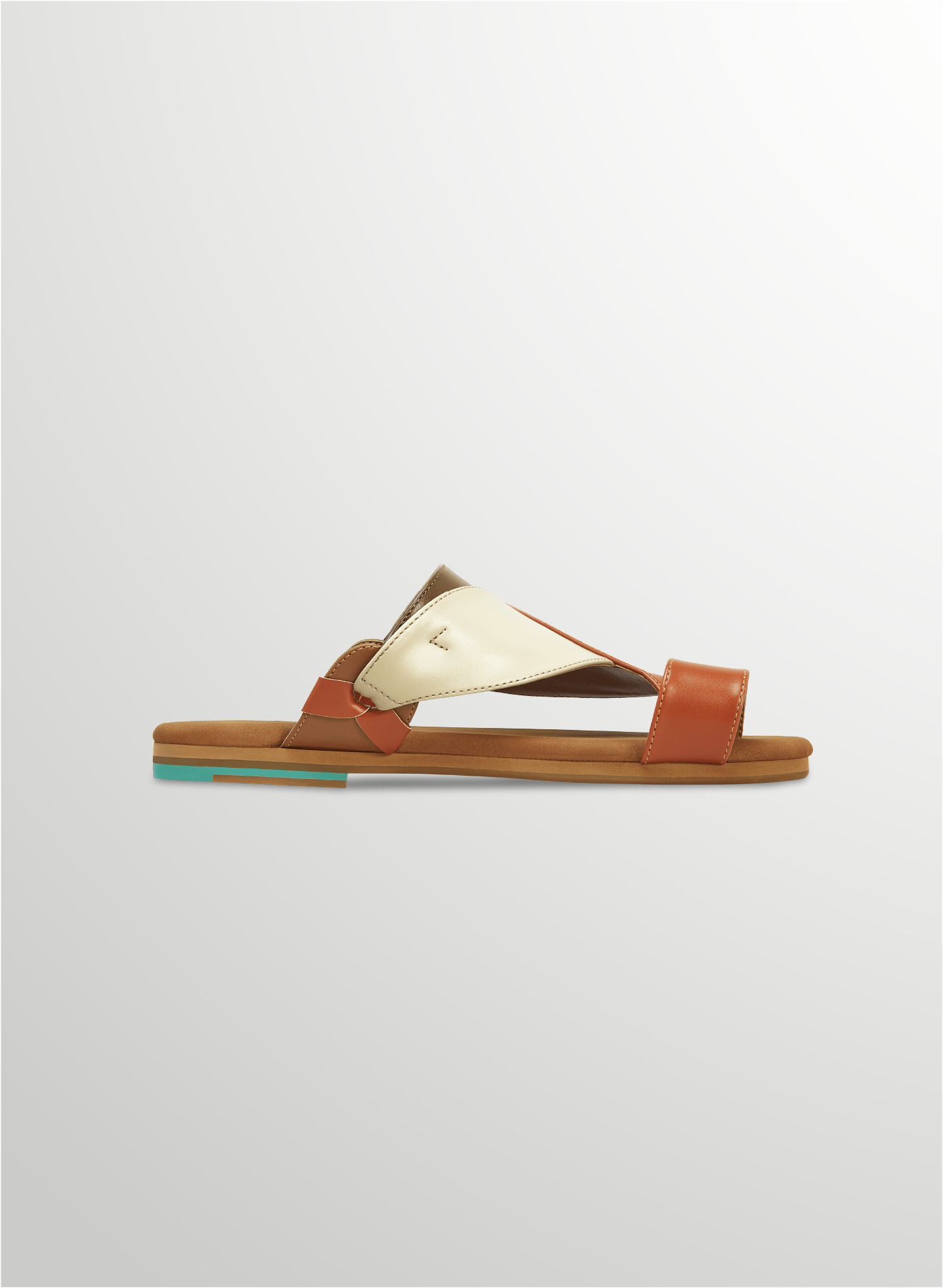 - An Arabic sandals design highlighting a mix of mud (orange-red), cream, and brown colours.