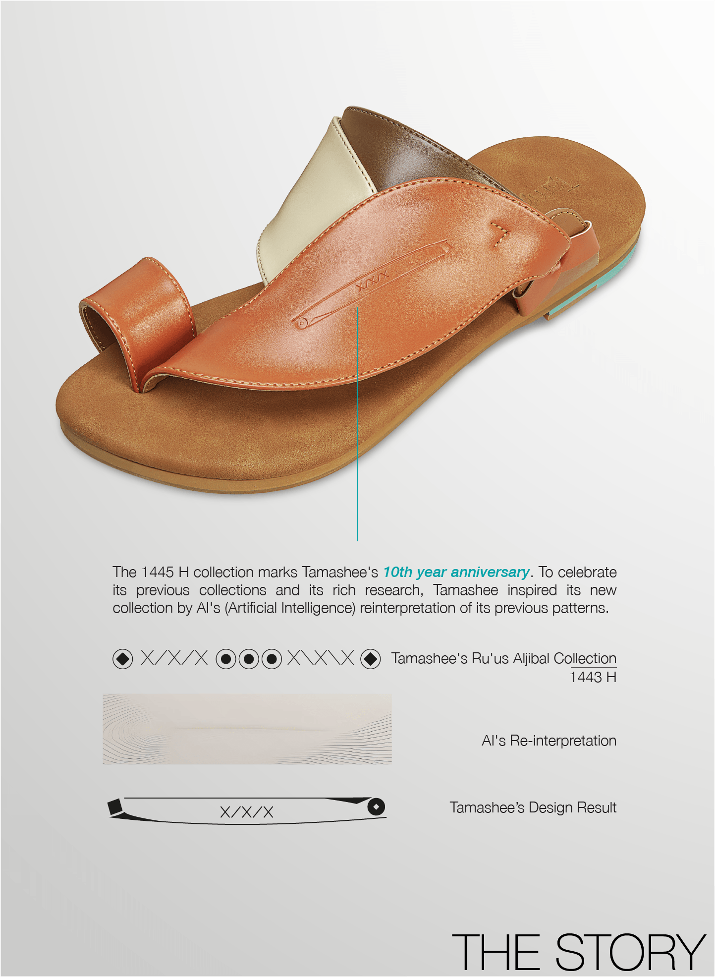 - We are finishing the embossing of the Hijri year in Arabic. Customise these Sandals for Men so that the detail appears only on the inner lining of the right vamp of the right foot.