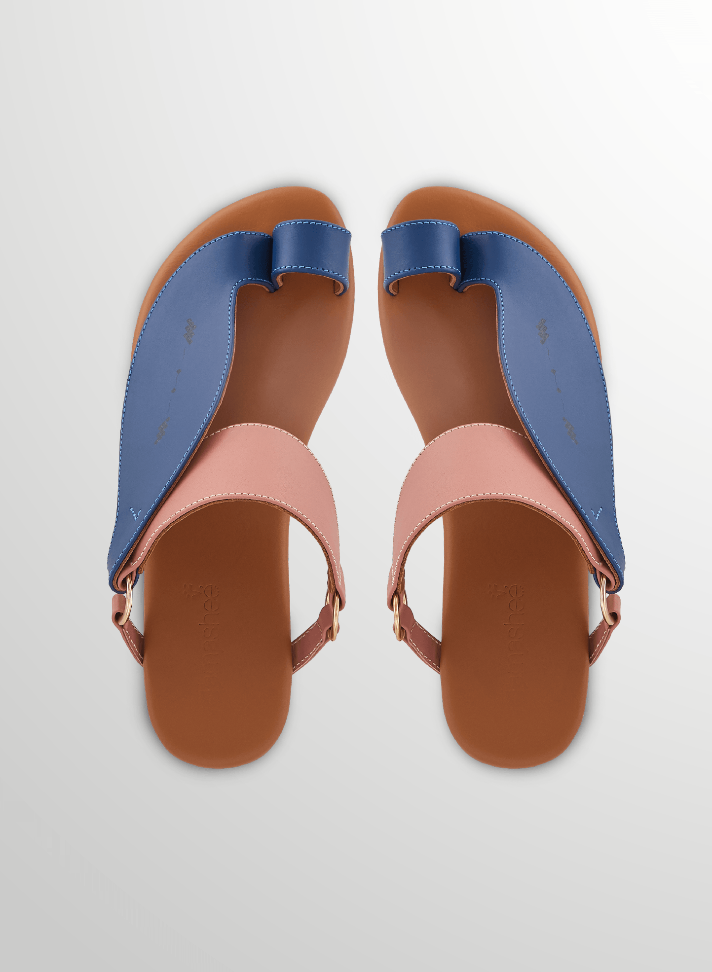 - High-quality midnight Blue (large flap) and Mauve (small flap) cow leather upper.