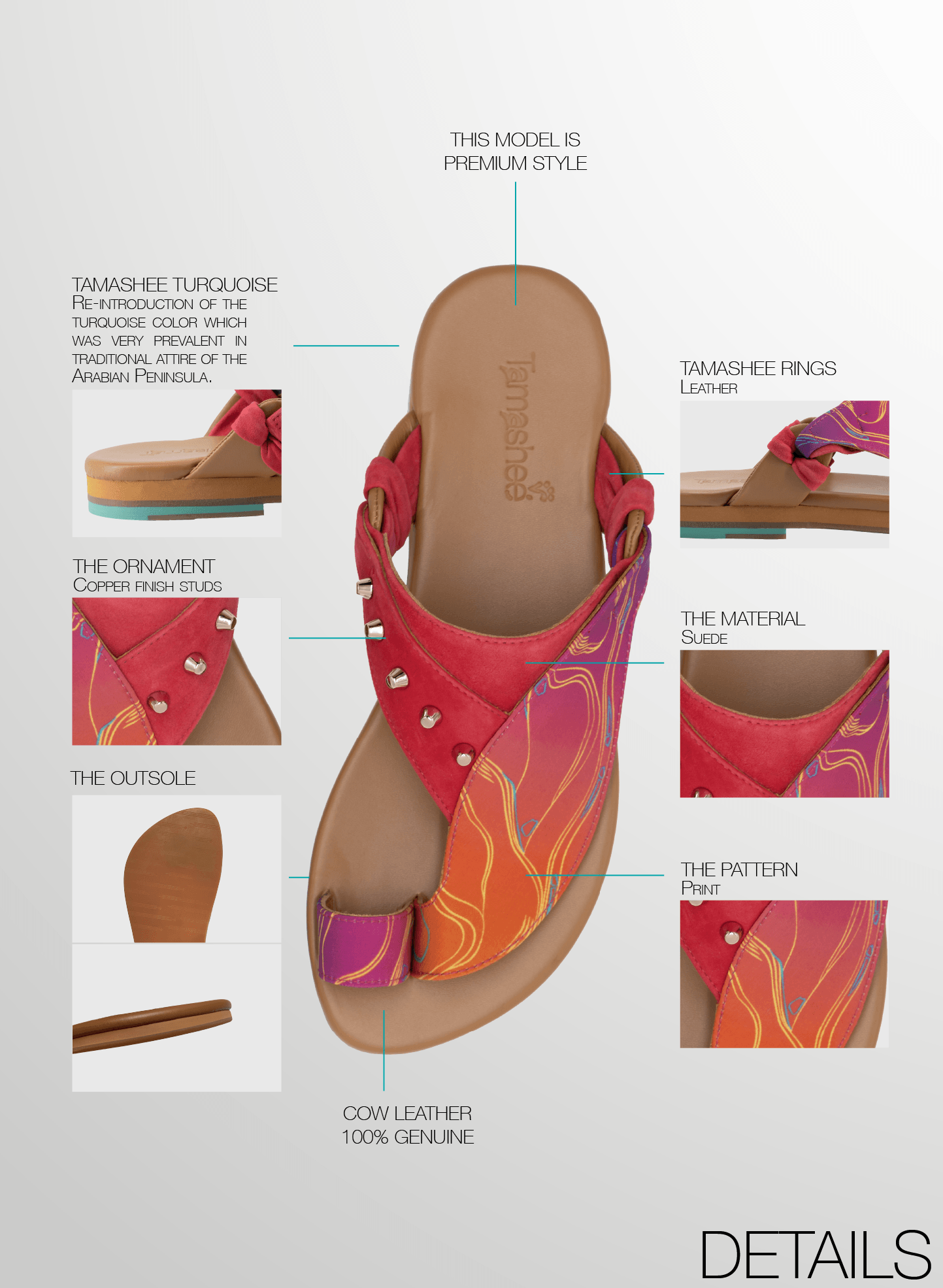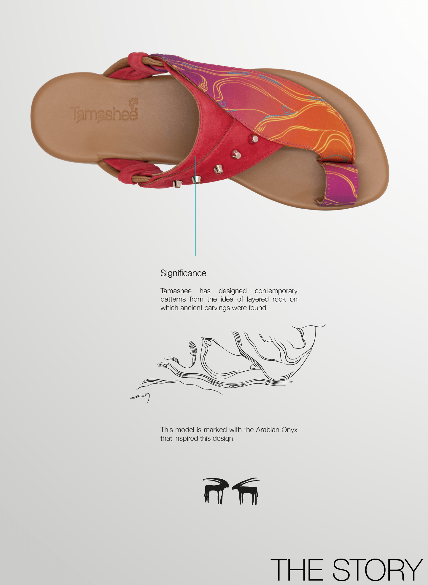 The large flap Hili Sandals for Women design highlights inspired artwork by AI’s reinterpretation of Tamashee’s collection on Archeology. The final pattern you see on this Arabic Sandals model is the final re-creation of the artwork by Tamashee’s design team. Key features of this Bronze for Womens Sandals model include: