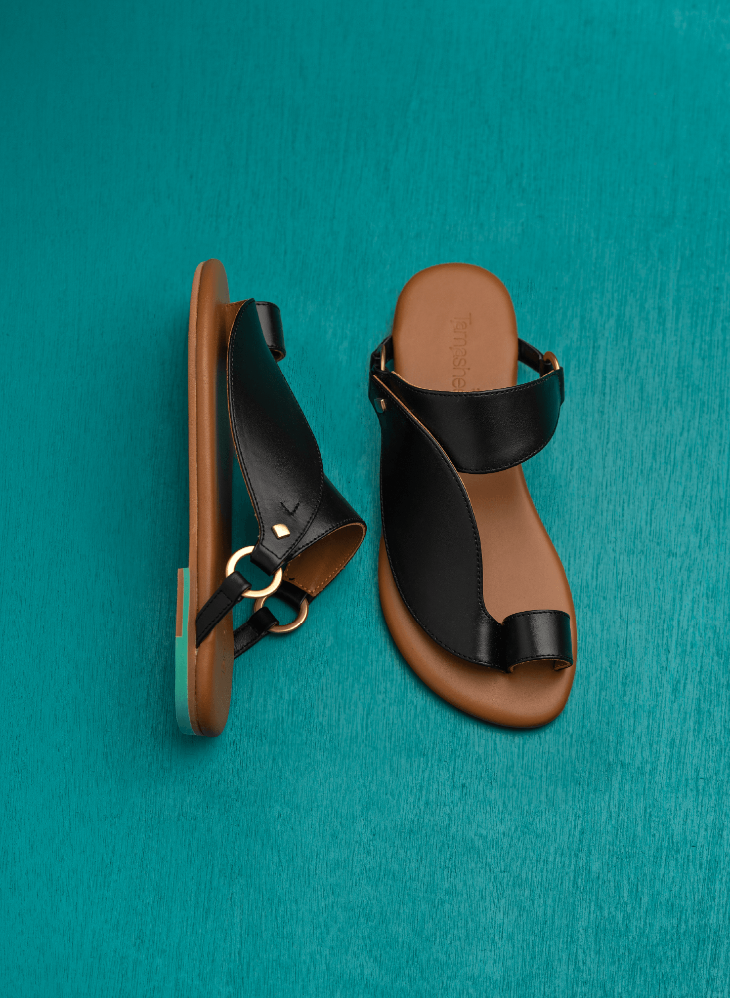 - A Ladies Sandals design highlighting solid Black Sandals colour