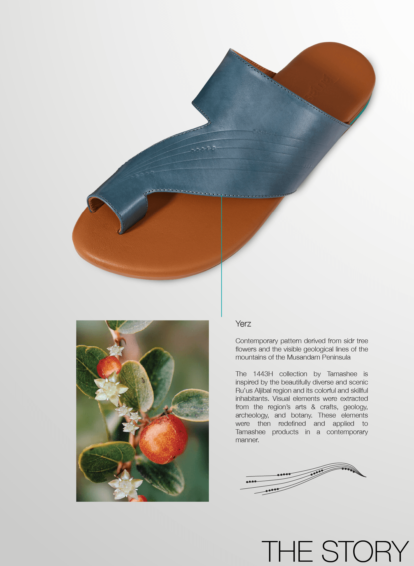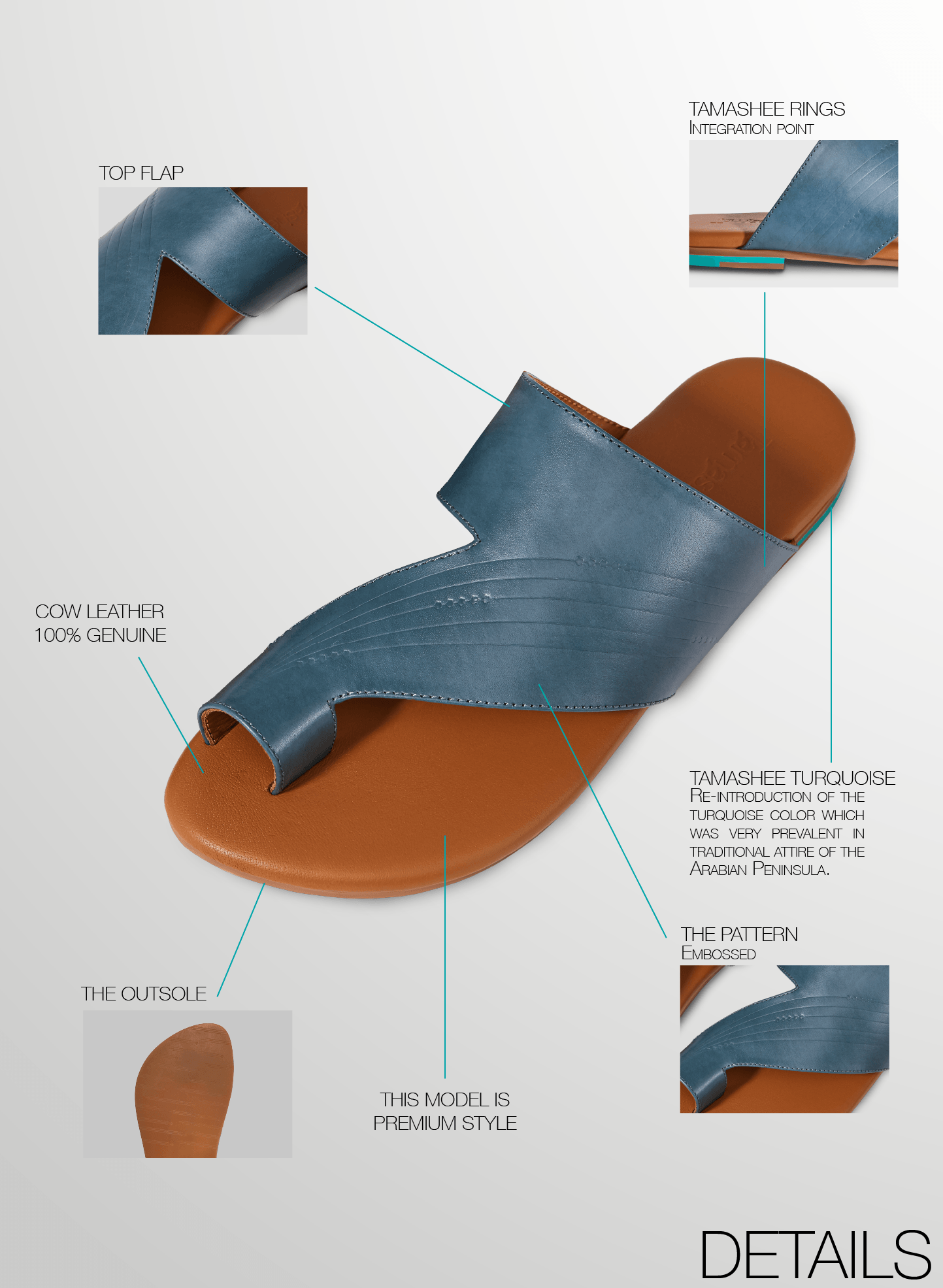The large flap Sandals for Women design highlights a contemporary pattern inspired by the geological lines in the mountains of Ru’oos Aljibaal region and the beautiful Sidr tree flower. The final pattern you see on this Womens Sandals model is the final re-creation of the artwork by Tamashee’s design team. Key features of this Tamashee Arabic Sandals model include:
